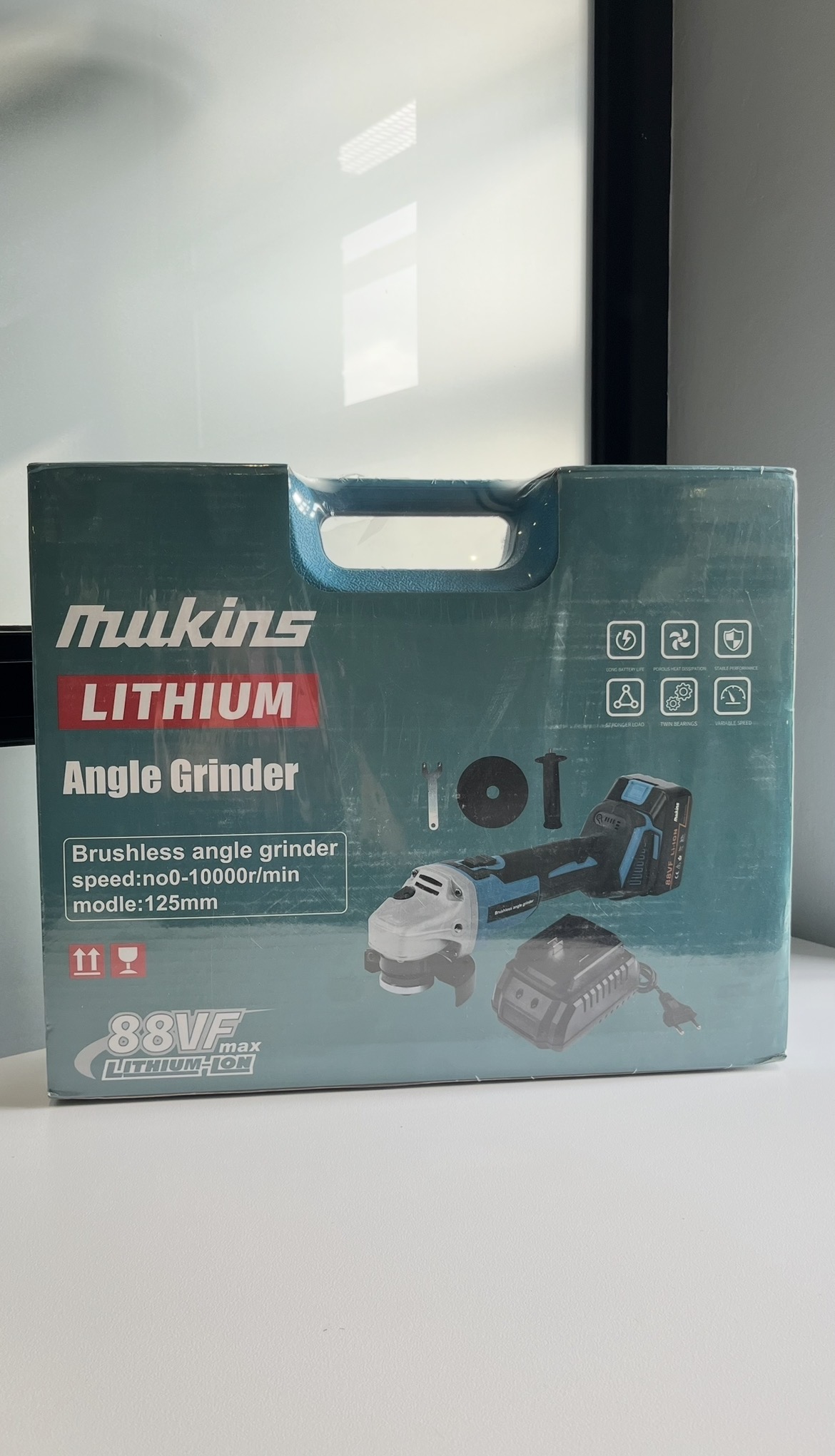 Mukins Brushless Angle Grinder – 88VF Max Lithium-Ion (125mm)